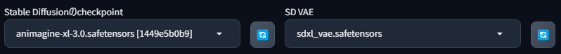 次に「SD VAE」の項目で「sdxl_vae.safetensors」を選びます。この設定により、モデルが最適な状態で動作します​ 。