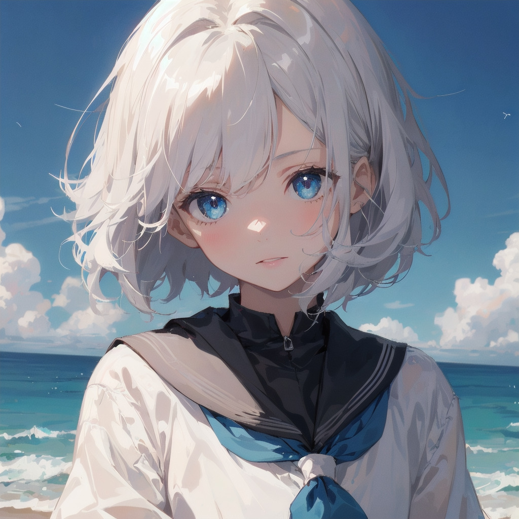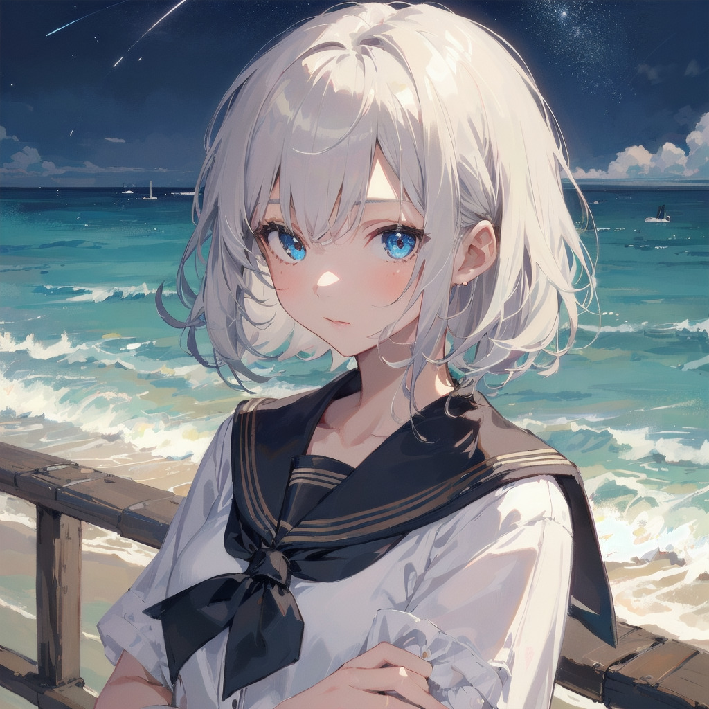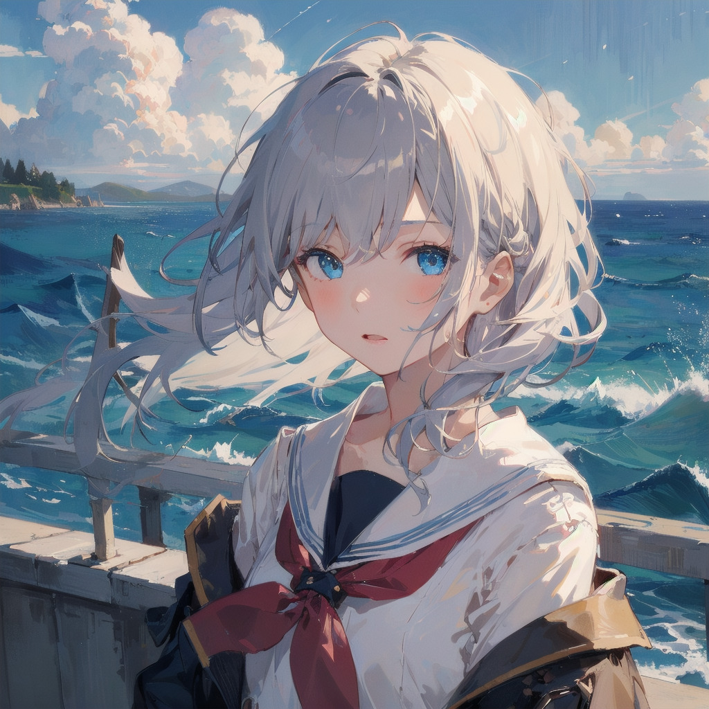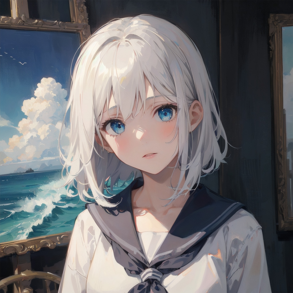 (1 girl, solo:1.5), medium cut,silver hair,high school sailor uniform, pov,