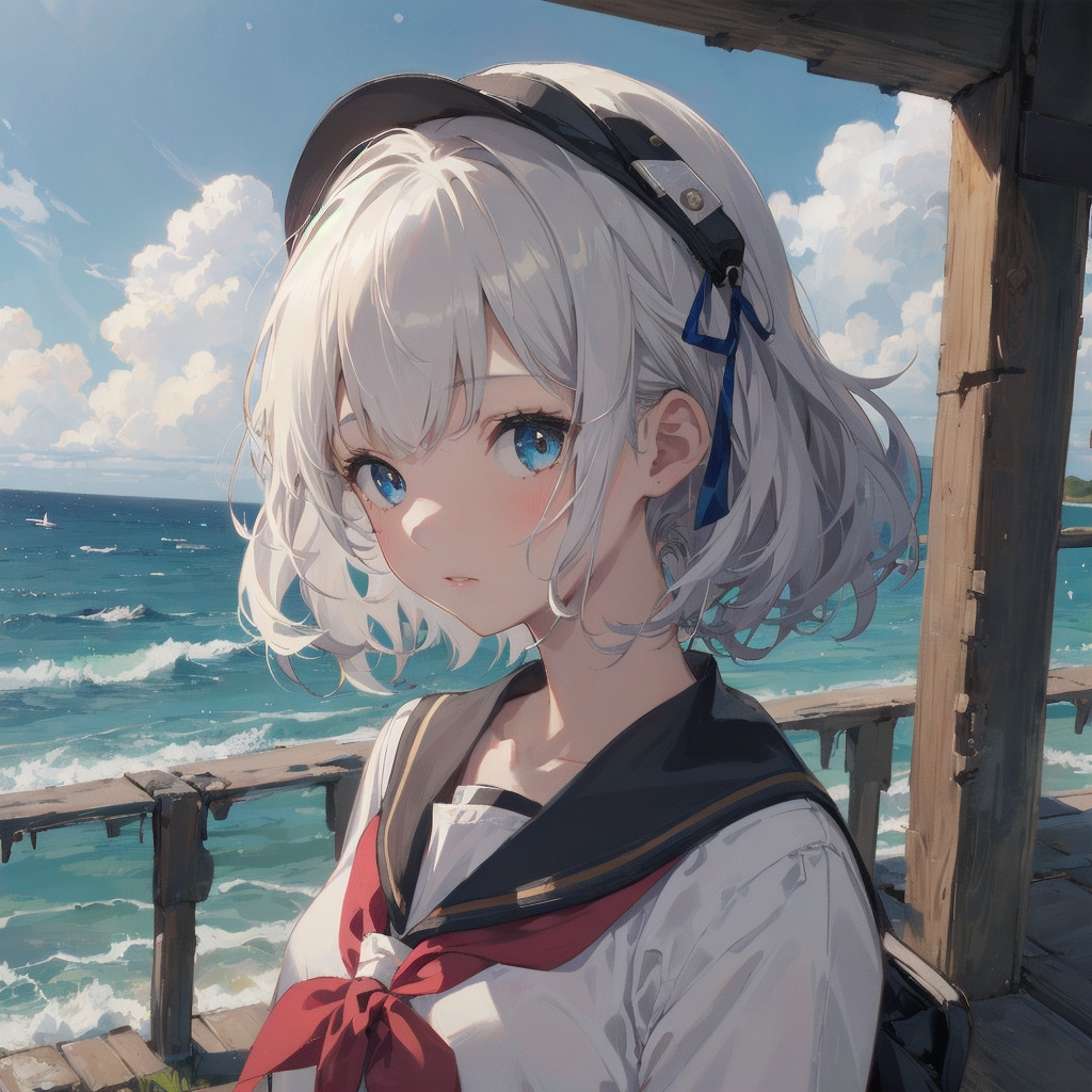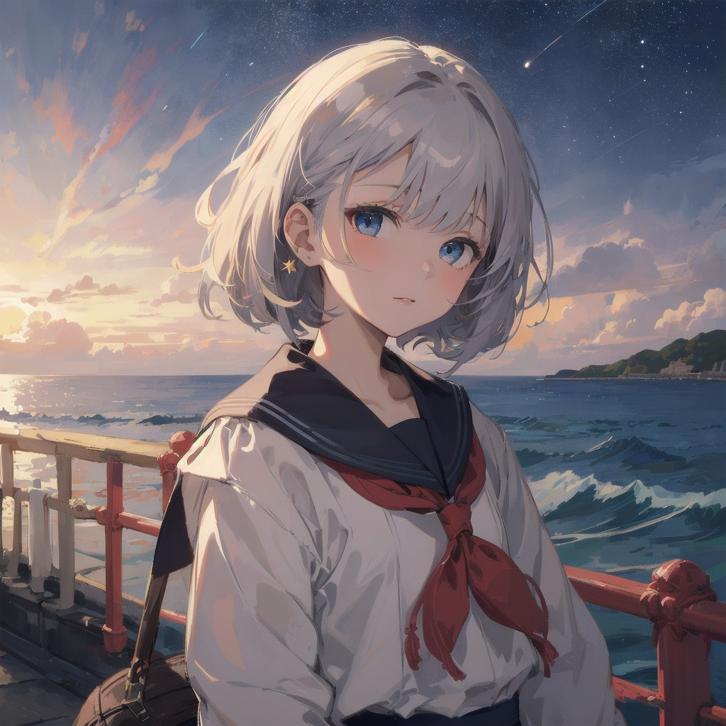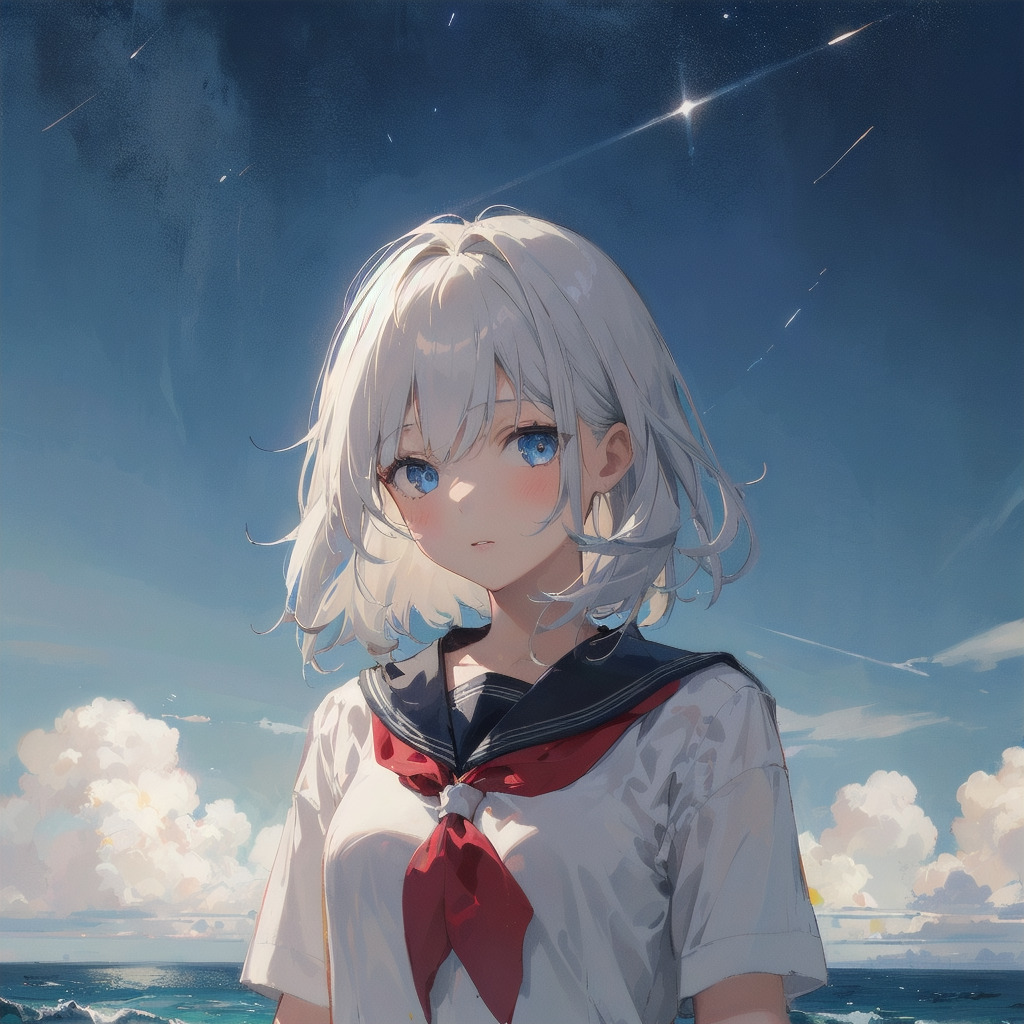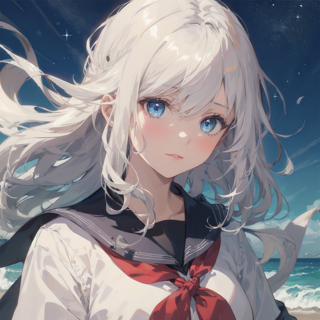 (1 girl, solo:1.5), medium cut,silver hair,high school sailor uniform, pov,