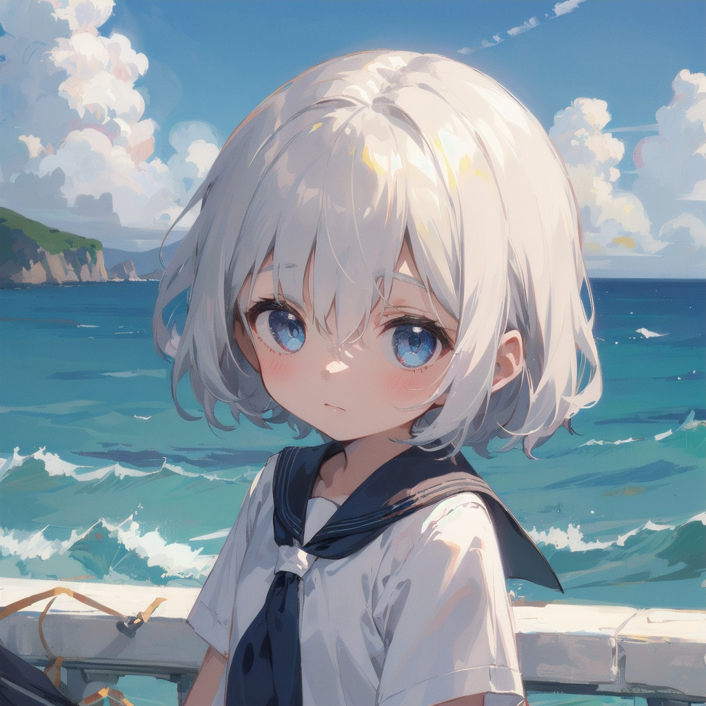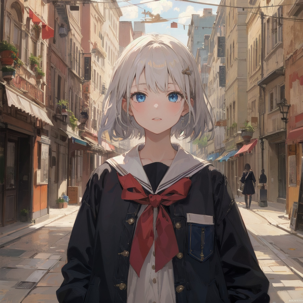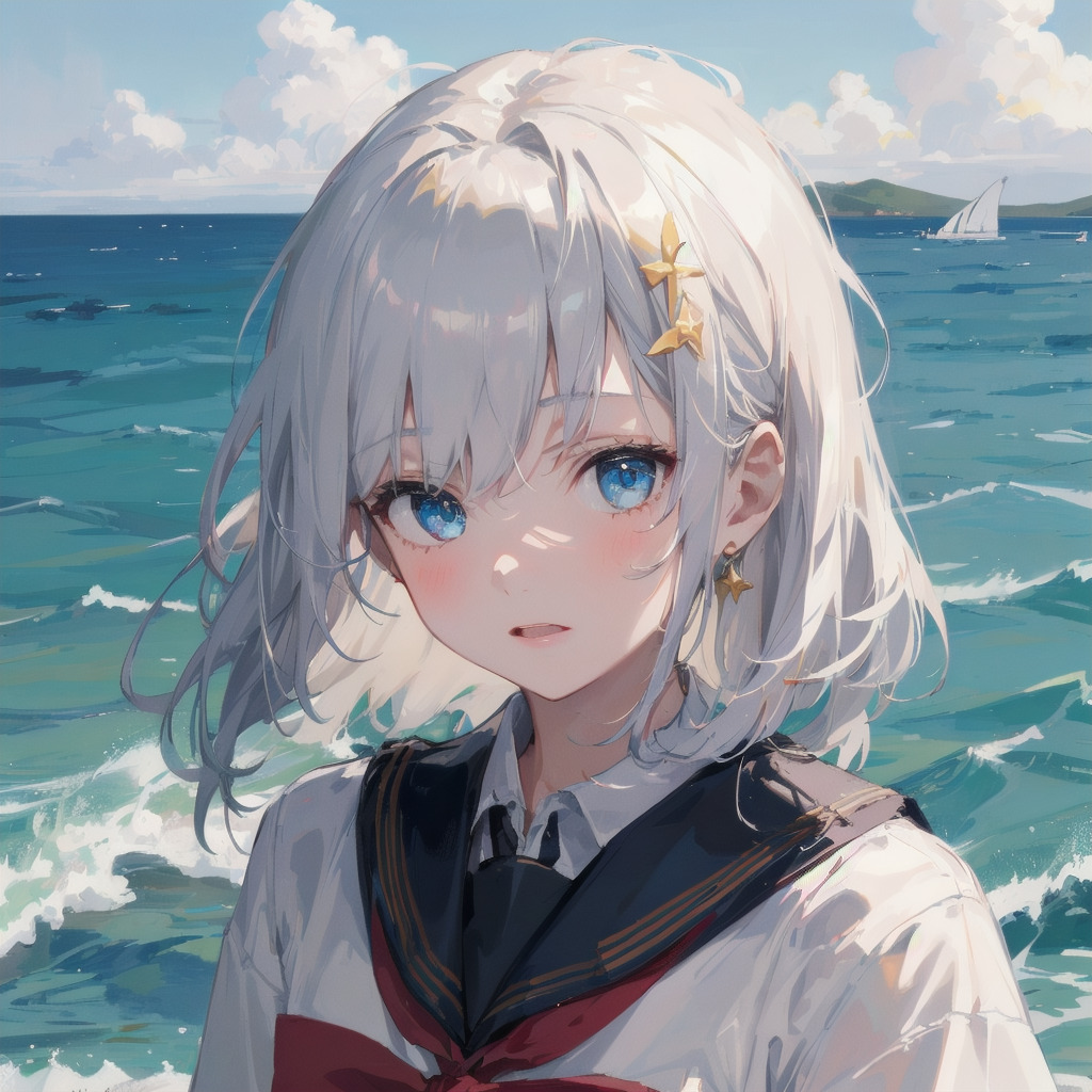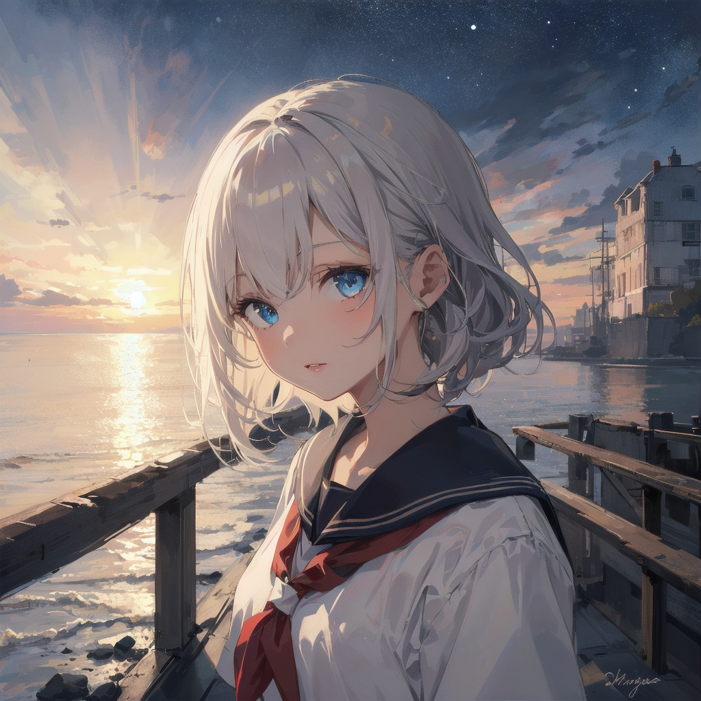 (1 girl, solo:1.5), medium cut,silver hair,high school sailor uniform, pov,