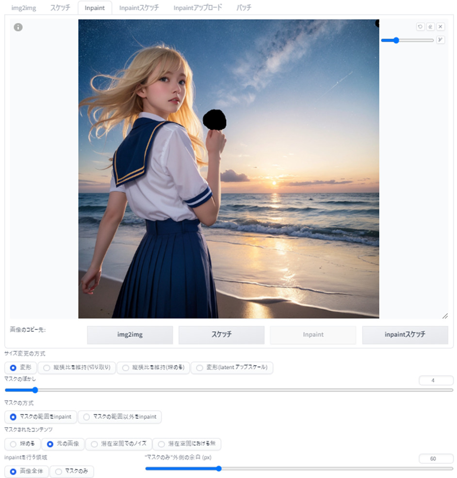 - inpaintを行う領域:画像全体