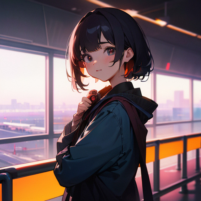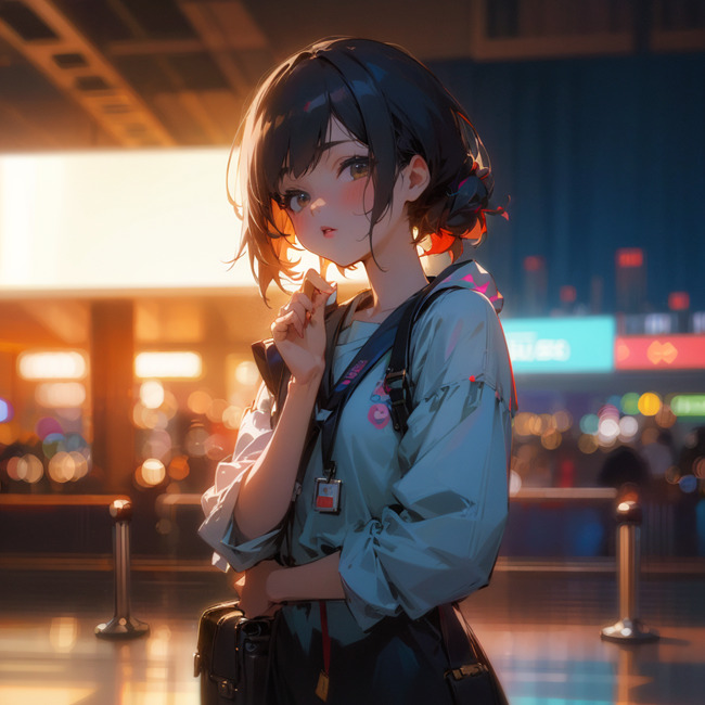 best quality ,masterpiece, ultra high res, 1 girl, looking at viewer, very beautiful, kawaii, Cinematic, 35mm lens, f/ 1. 8, accent lighting, 8k, at airport