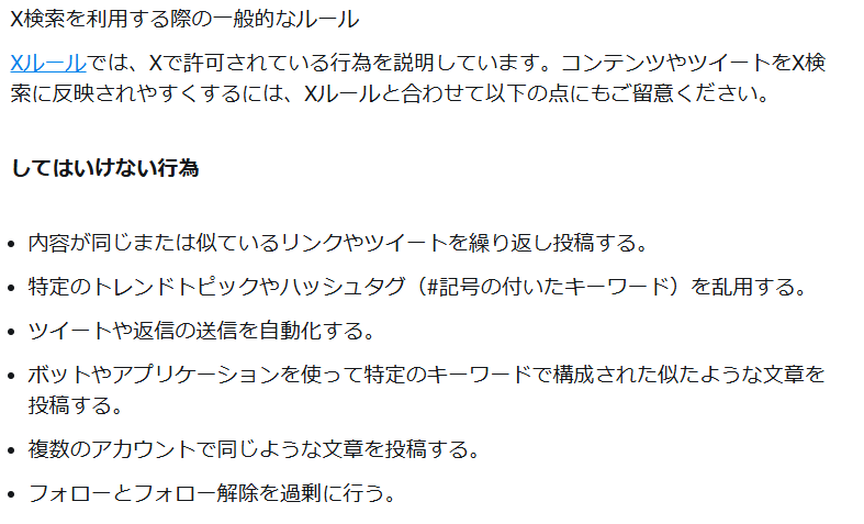 Xでは、公式サイトで、「してはいけない行為」が明記されています。